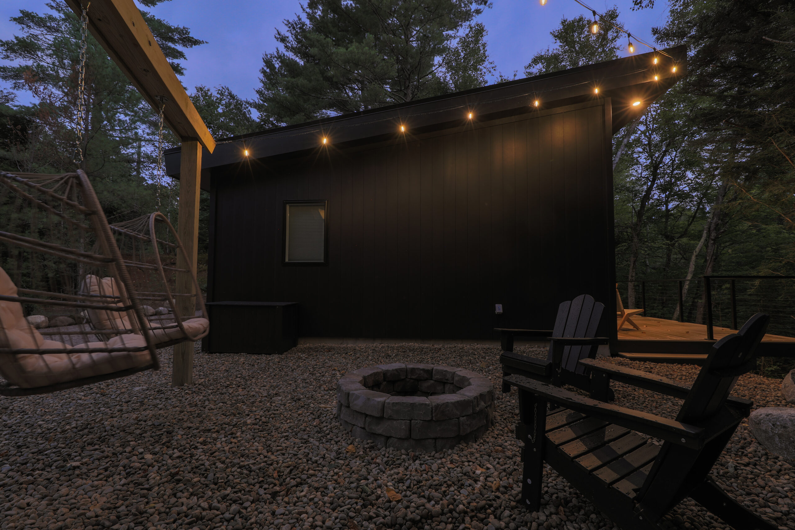 Delight in the privacy of your spacious cabin, set on 3.5 acres of serene woodland. The thoughtful design allows for an uninterrupted connection to nature, ensuring your retreat feels exclusive and tranquil throughout your stay.