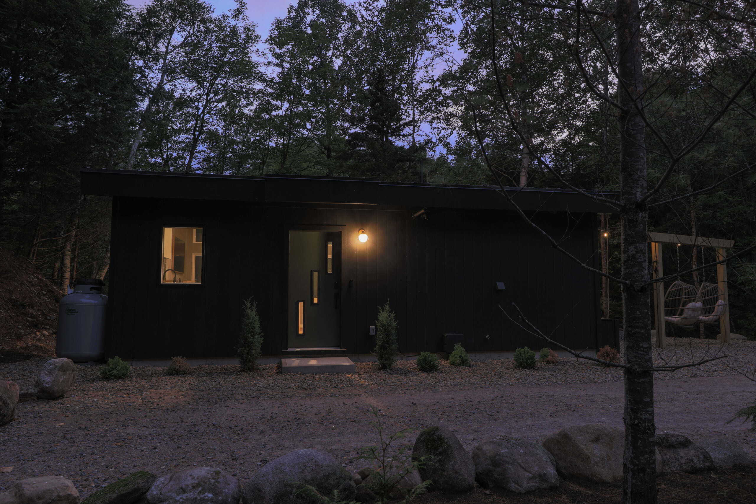 Experience the unparalleled tranquility of The Cabin at Bear River, a luxurious retreat nestled within the enchanting woods of Newry, Maine. Ideal for couples, families, or close friends, this Japandi-inspired sanctuary offers a remarkable balance of nature and elegance, providing a perfect backdrop for rejuvenation and connection. With its thoughtfully designed interiors, radiant heated floors, and expansive floor-to-ceiling windows, the cabin invites you to immerse yourself in the serene woodland surroundings, creating a soothing atmosphere that encourages relaxation and intimacy.